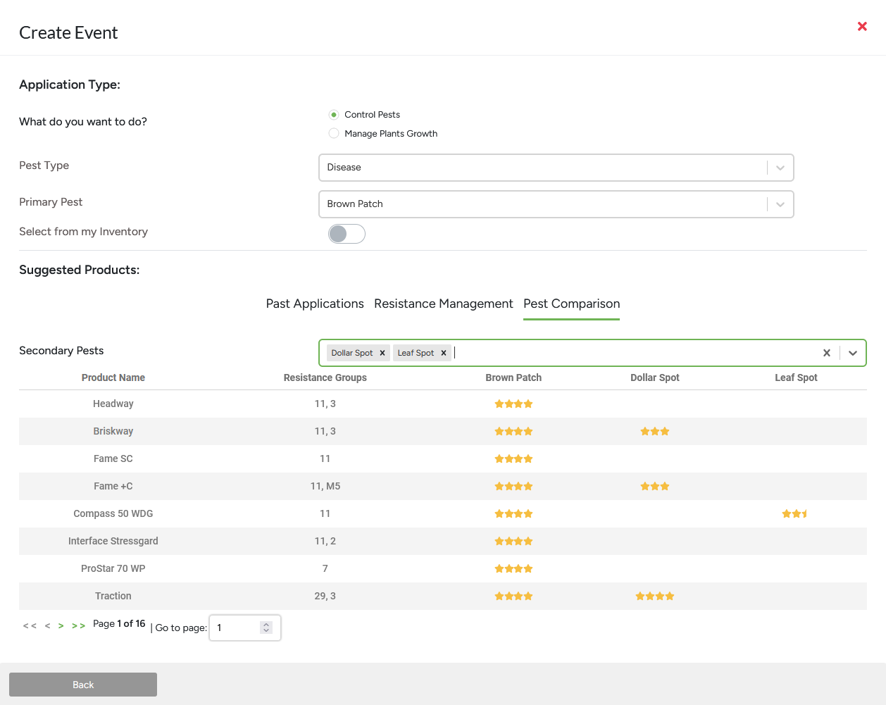 GreenKeeper’s Application Advisor pulls from independent and university research trial data to show you which products are the most effective against specific pests. Compare product performance across multiple pests, filter by what’s in your inventory, and review past applications to make a confident selection. Rotation icons flag chemical classes so you can see whether you’re rotating properly.