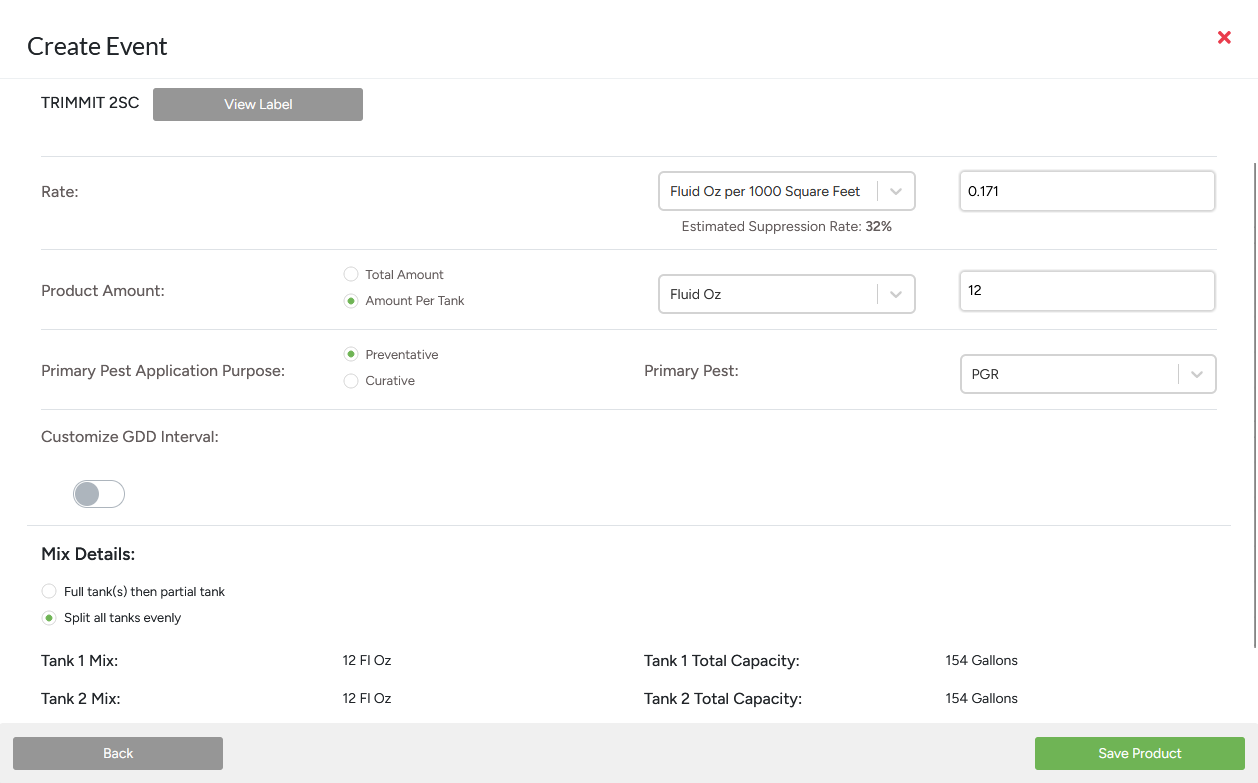 Once a product is selected, you can view the label in GreenKeeper, decide on an application rate, and lock in the re-application interval. Everything you need to make the best decision is in one place.