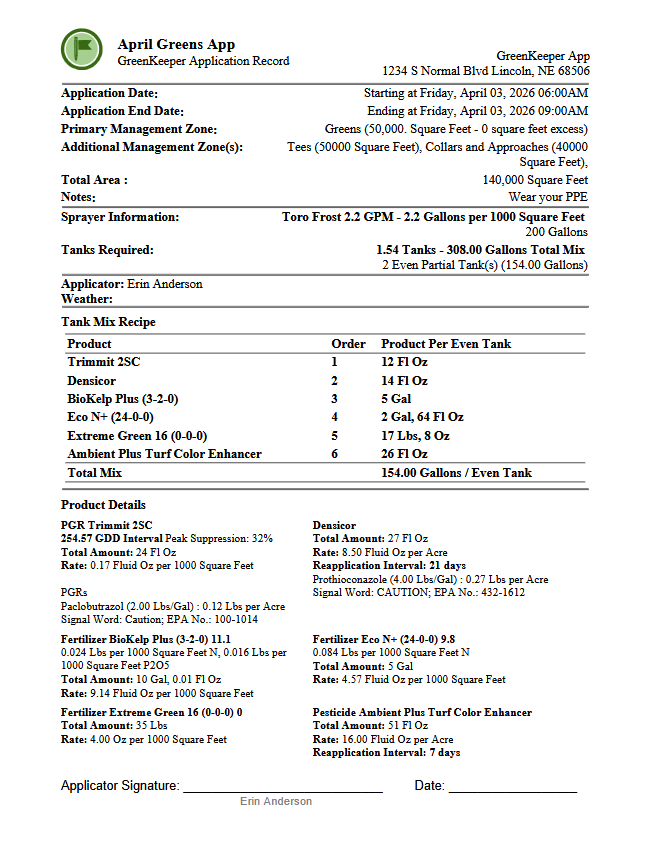 Turf managers have to select products, do the math, and keep up with inventory and compliance reporting regardless of what tools they use. GreenKeeper makes all of that easier, and the best way to experience it is to simply start logging applications.